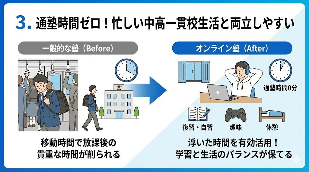 通塾時間ゼロ!忙しい中高一貫校生活と両立しやすい